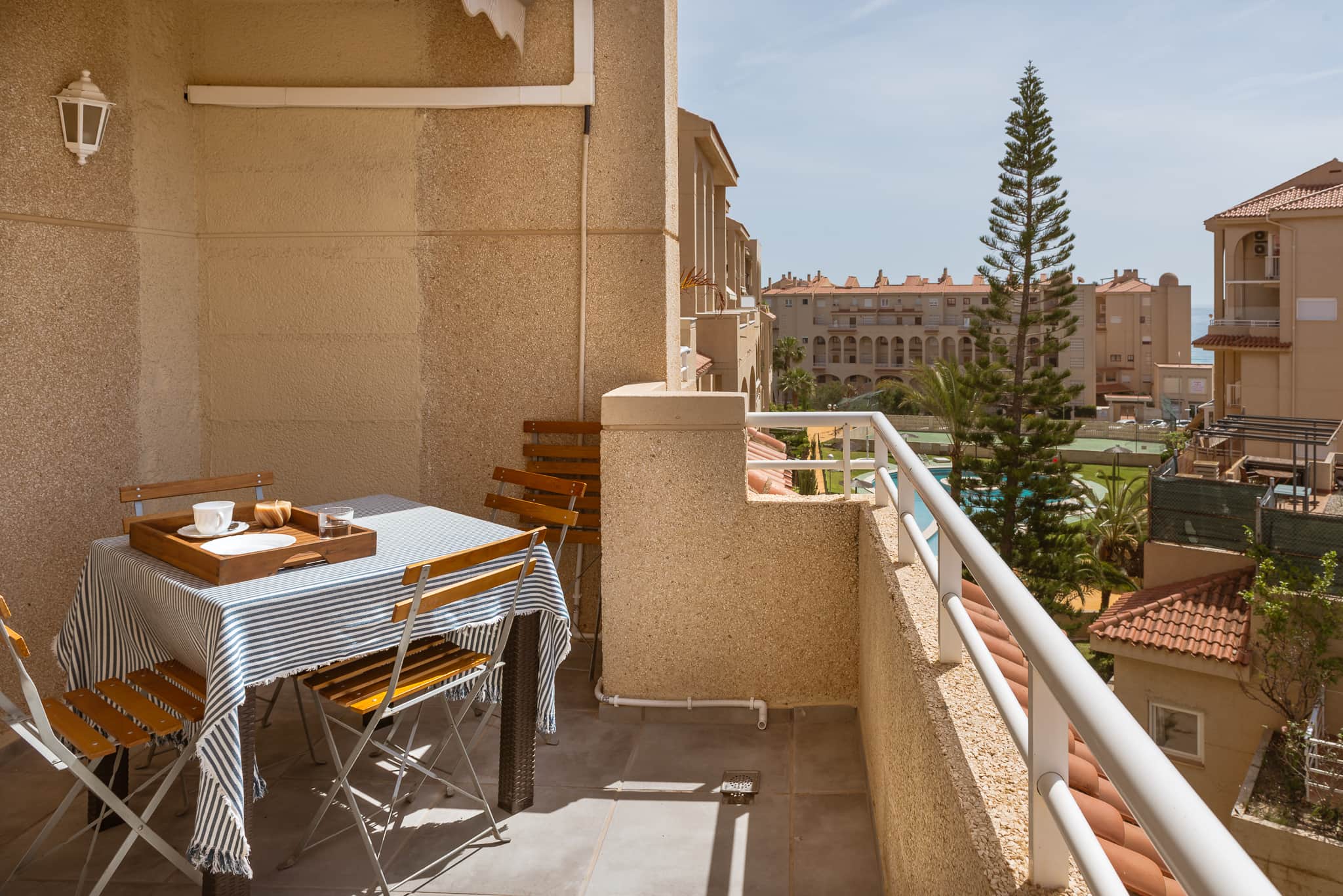 Duplex lumineux à 3 minutes de la plage, avec une grande terrasse et vue sur la mer. Cuisine rénovée et résidence avec piscine, terrain de padel et aire de jeux pour enfants. Un espace confortable et calme, avec un style plus classique dans certaines pièces. Idéal pour profiter de l’extérieur et de la proximité de la mer